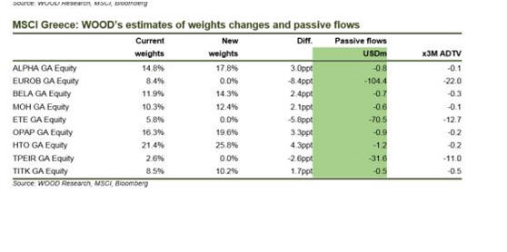 αναδιάρθρωση του δείκτη MSCI Greece οδηγεί σε αλλαγή της
