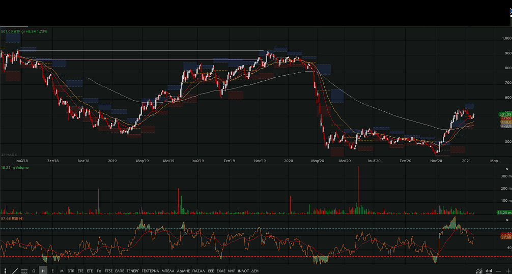 αντιστάσεις στα επίπεδα των 495 – 505 μονάδων, με το δείκτη
