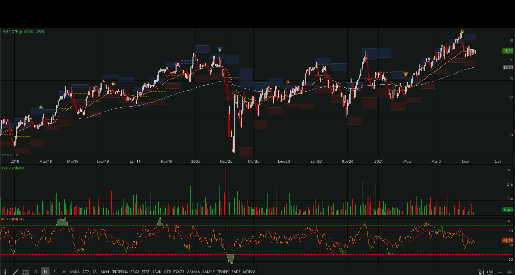 η μετοχή την επαφή με τα επίπεδα των 14,60 – 14,70 ευρώ,