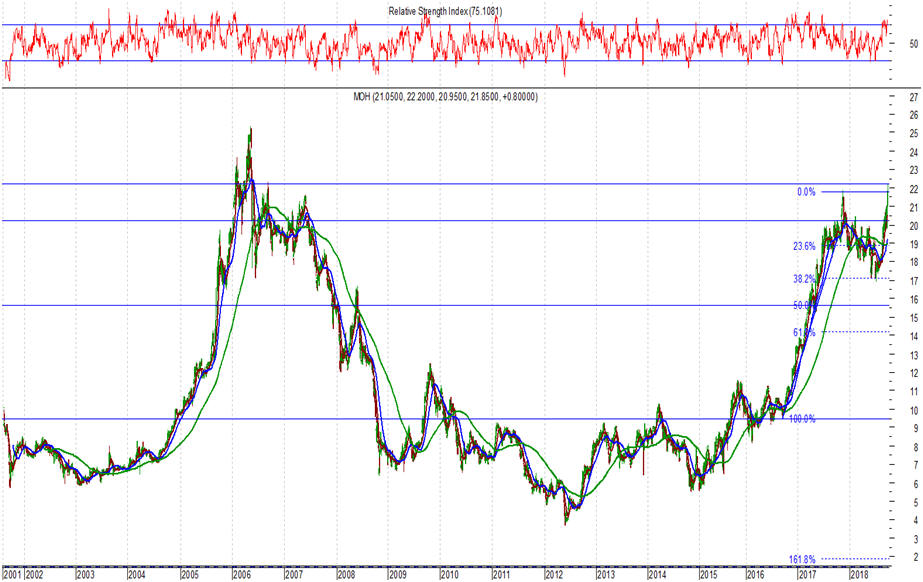 Και σε αυτό το σημείο αξίζει να σταθούμε λίγο στη Motor Oil, η οποία κατά το τελευταίο χρονικό διάστημα έχει επιδείξει μια εξαιρετική συμπεριφορά. Είναι χαρακτηριστικό πως από τις αρχές Ιουλίου η μετοχή καταγράφει άνοδο 27,7%. Και πάμε τώρα στα ακόμη πιο εντυπωσιακά. Η μετοχή ουσιαστικά βρίσκεται στο υψηλότερα επίπεδο των τελευταίων 12τών. Και ίσως ένα ακόμη πιο εντυπωσιακό. Ότι απέχει μόλις 10% από το ιστορικό υψηλό (σε κλείσιμο) του Μαΐου του 2006 (στα 25,33 ευρώ το ενδοσυνεδριακό ιστορικό υψηλό της μετοχής).