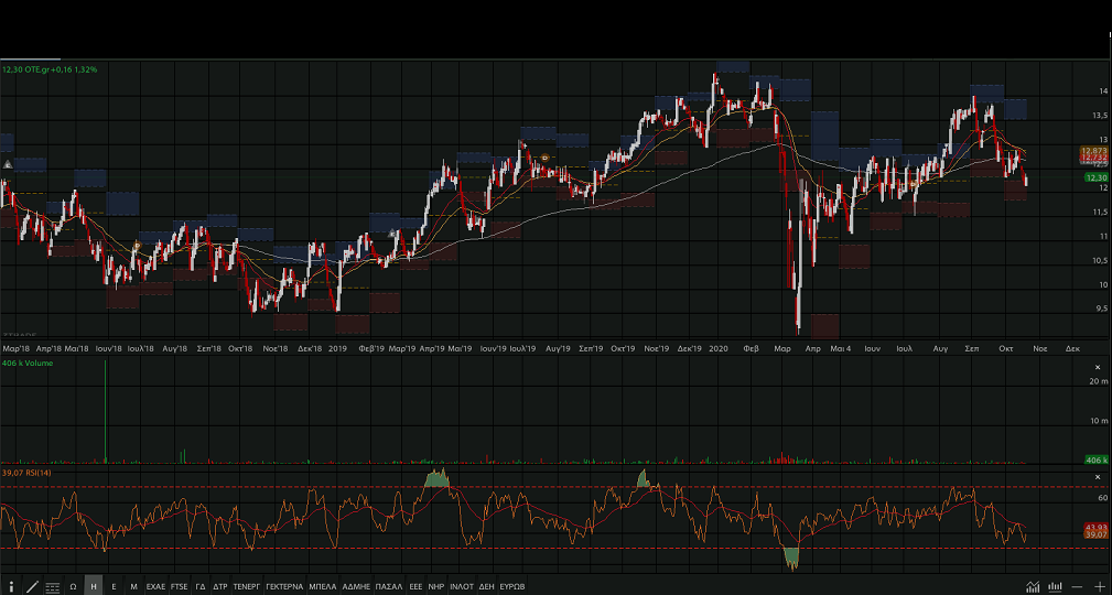 Στα 12,30 ευρώ έκλεισε η μετοχή του ΟΤΕ, με κέρδη 1,32% …..