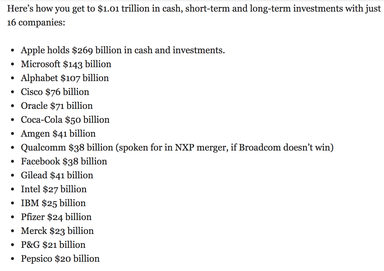 ότι οι 16 μεγαλύτερες εταιρείες έχουν ταμείο 1τρις δολάρια!!!!