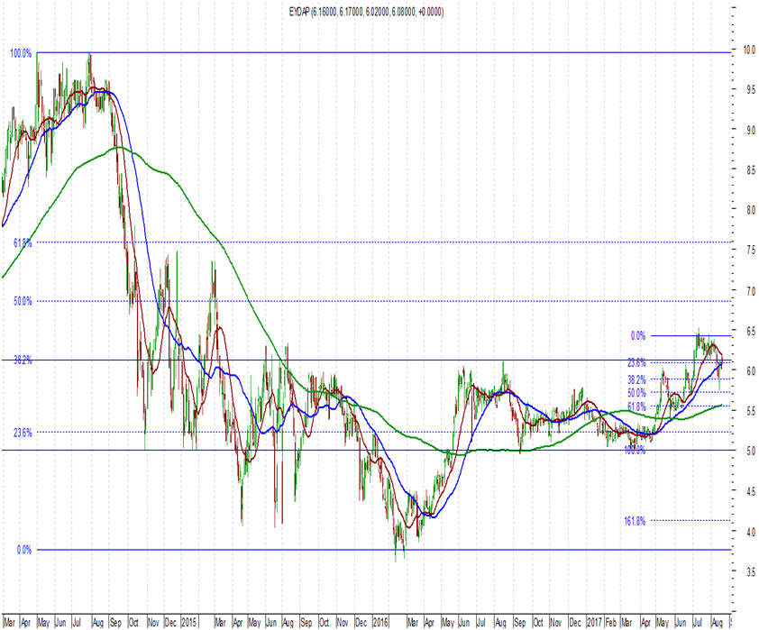 5,60 ευρώ (επόμενες πολύ ισχυρές στηρίξεις). Από την άλλη