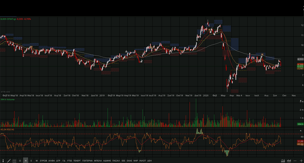 Τέλος, με σημαντικές απώλειες η μετοχή του ΟΠΑΠ, στα 8,005 ευρώ, -4,70%. Και εδώ διαγραμματικά, οι επόμενε συνεδριάσεις