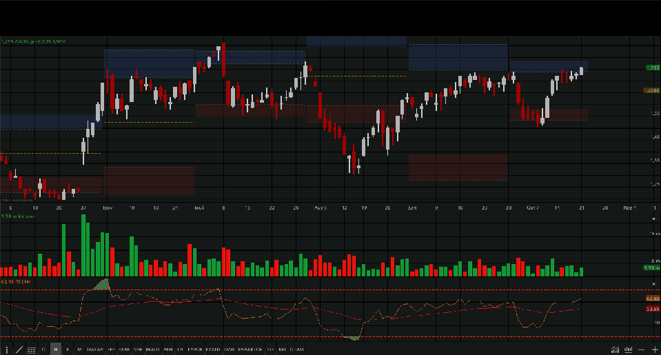 στα όρια των οποίων κινείται η μετοχή κατά τις τελευταίες