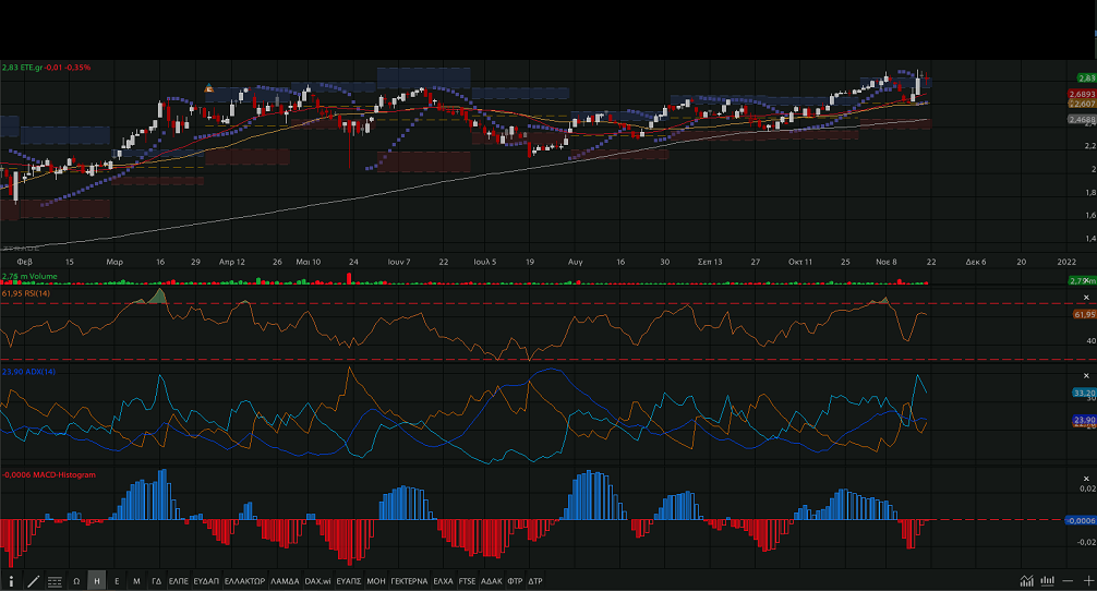 έκλεισε στα 2,83 ευρώ, -0,53%, με την τάση πλήρως θετική