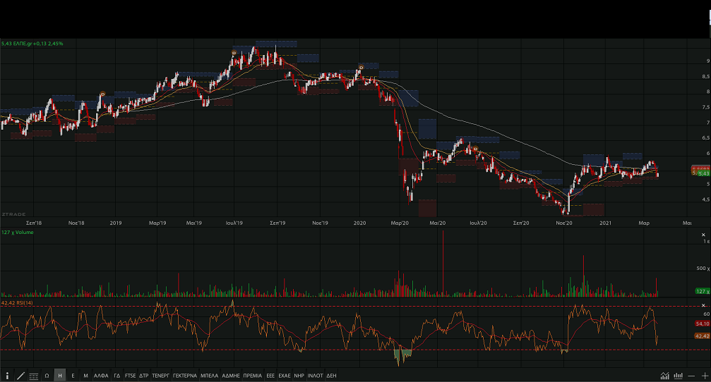Στα 5,43 ευρώ έκλεισαν τα ΕΛΠΕ, με άνοδο 2,45% και υπάρχει