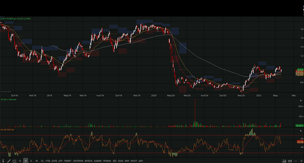 μεγάλο ζητούμενο είναι να μείνει η μετοχή υψηλότερα των 0,87