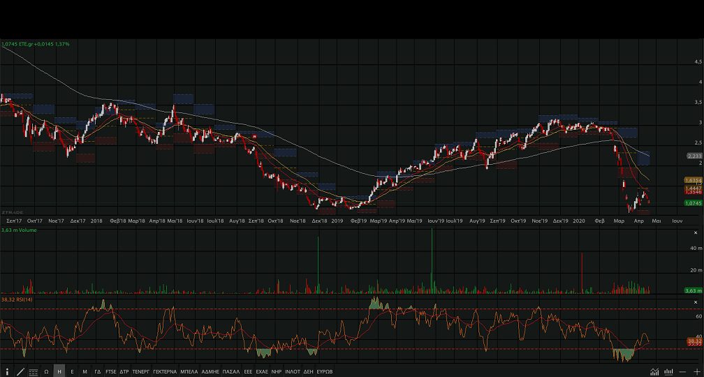 Πρώτη σε άνοδο από τον FTSE 25 ήτανε χθες η ΕΤΕ, στα 1,0745 ευρώ, +1,37%, αν και όταν μιλάμε για τράπεζες αυτά τα ποσοστά