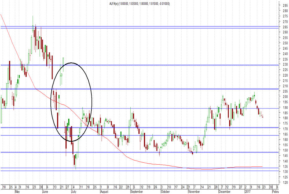 μέχρι τις στηρίξεις στα 1,70 – 1,72 ευρώ, οι οποίες σε καμία