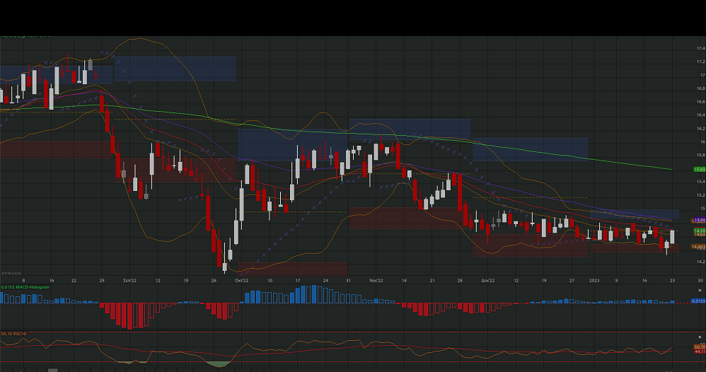 εικόνα, με κλείσιμο την Παρασκευή στα 14,70 ευρώ, +1,17%. Όπως έχουμε επισημάνει, με την τάση επιβαρυμένη εδώ και