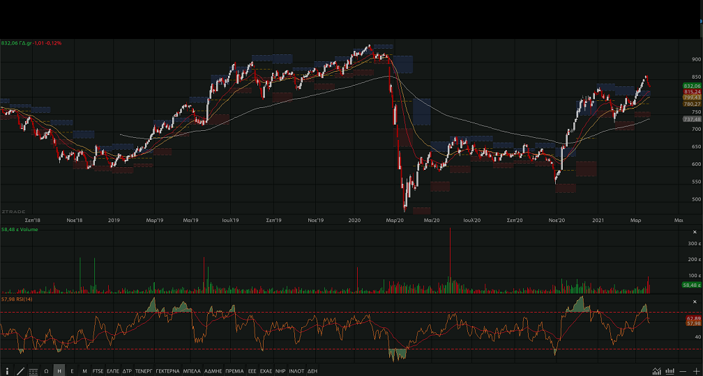 τάσης, με πτώση μέχρι τις στηρίξεις στις 810 – 800 μονάδες.