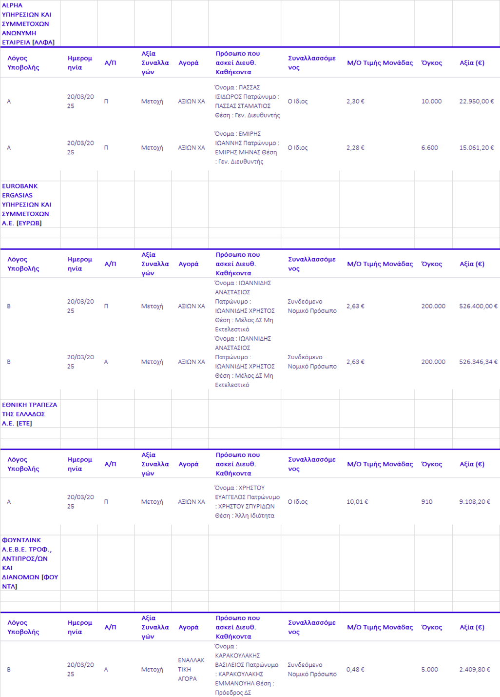 χρηματοοικονομικές συναλλαγές. Κατά τη διάρκεια περιόδων