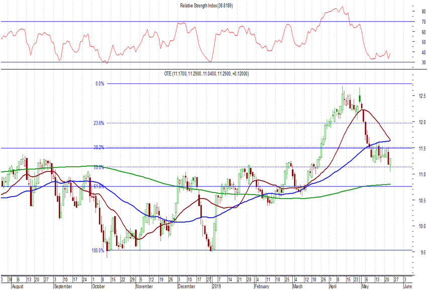 στα 11,29 ευρώ έκλεισε η μετοχή του ΟΤΕ (+1,07%), με τη