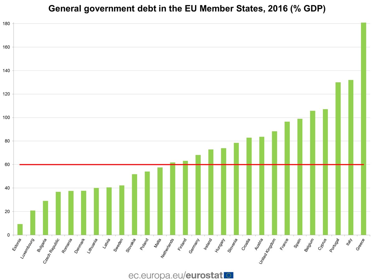 16 χώρες της Ε.Ε. έχουν χρέος μεγαλύτερο του 60%. Φυσικά