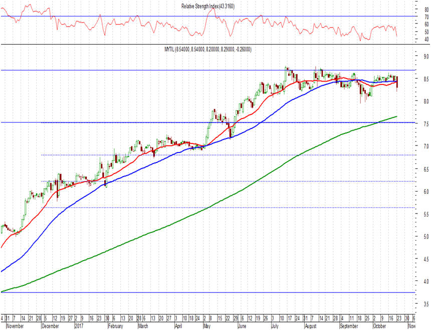 μετοχή του Μυτιληναίου (8,29 ευρώ, -3,04%), με τη