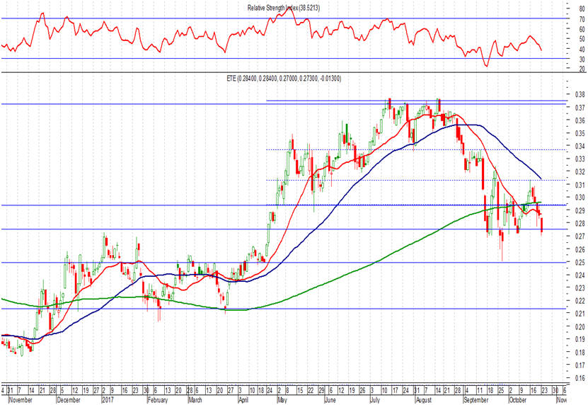 στηρίξεων των 0,272 – 0,274 ευρώ (κλείσιμο 0,273 ευρώ,