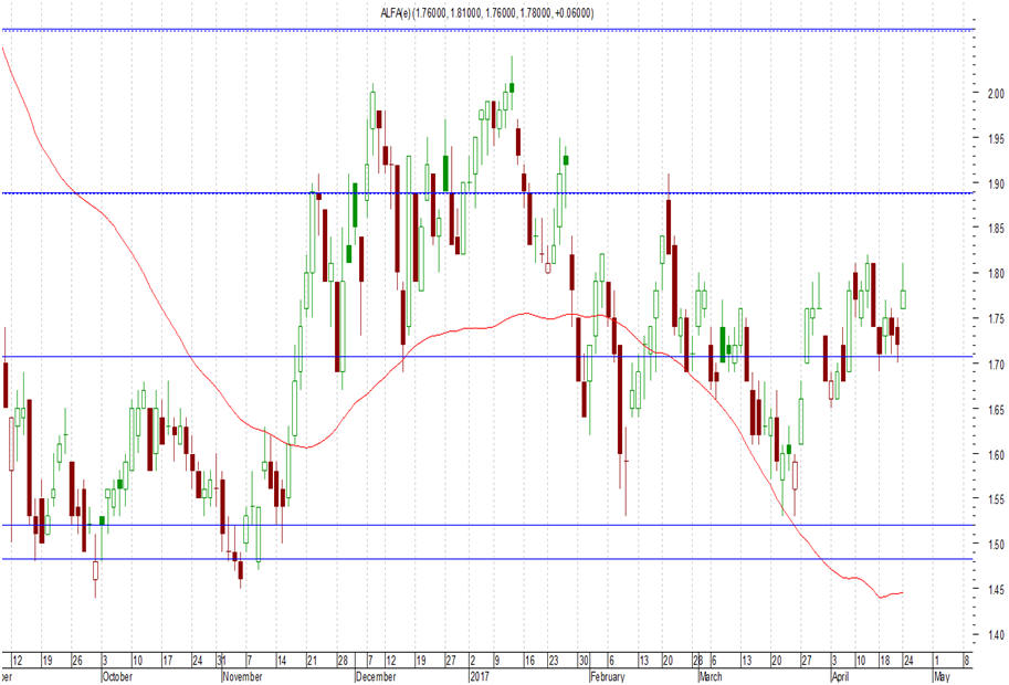 επίπεδα των 1,80 – 1,82 ευρώ (κλείσιμο 1,78 ευρώ, +3,49%),