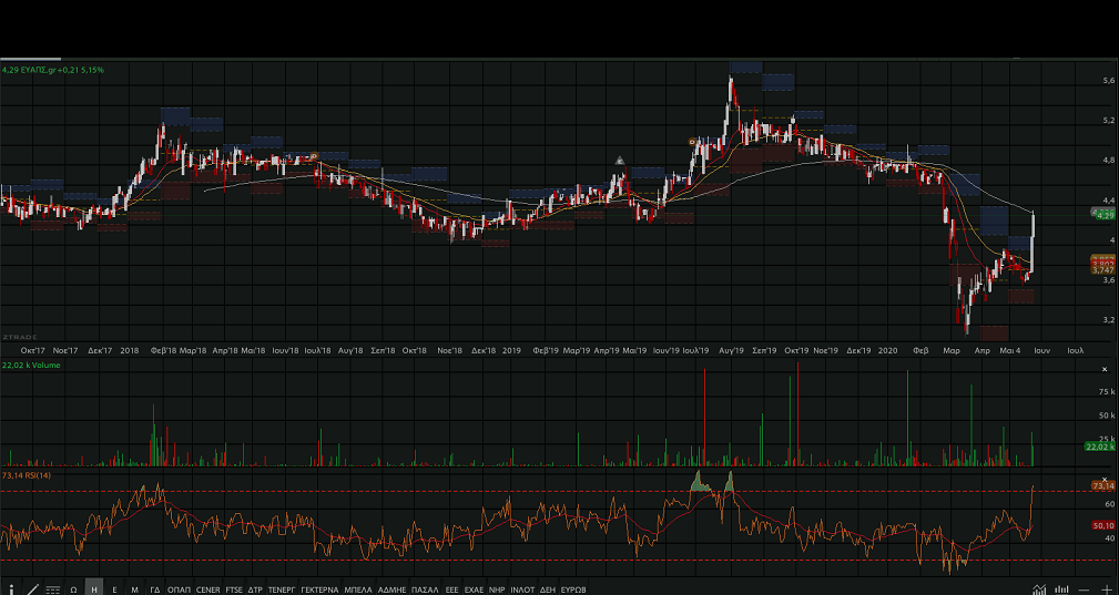 στο υψηλό ημέρας τα 4,34 ευρώ), +5,15%. Και πέραν των θετικών αποτελεσμάτων και του καλού μερίσματος,