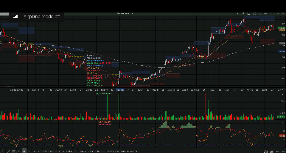 Τώρα σε περίπτωση απώλειας των 4,90 ευρώ, αναμένουνε κίνηση προς τις επόμενες στηρίξεις στα 4,50 – 4,60 ευρώ.