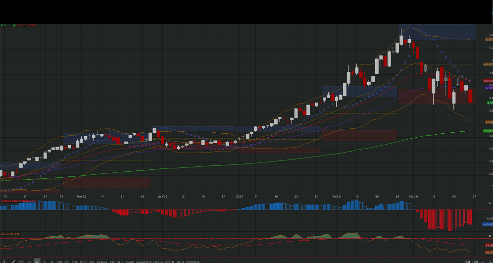 μετοχή να κλείνει στα 4,35 ευρώ, -6%, χαμηλότερα μάλιστα και