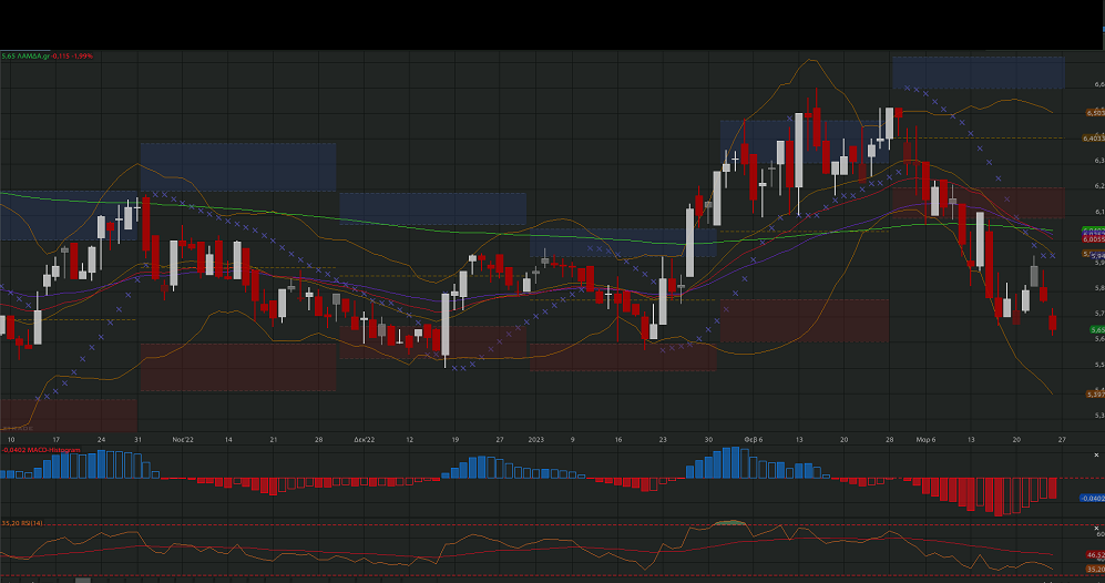 την Παρασκευή στα 5,65 ευρώ, -1,99%, με αρνητική τάση και τα