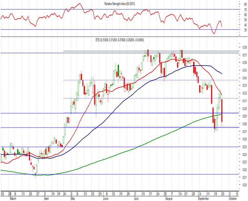 άμεσα η μετοχή υψηλότερα των 0,274 – 0,276 ευρώ. Σε