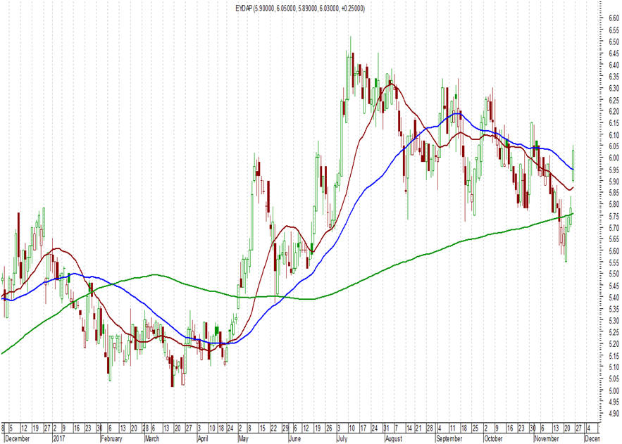 6,03 ευρώ, με τη μετοχή να κλείνει την ημέρα με gap, το