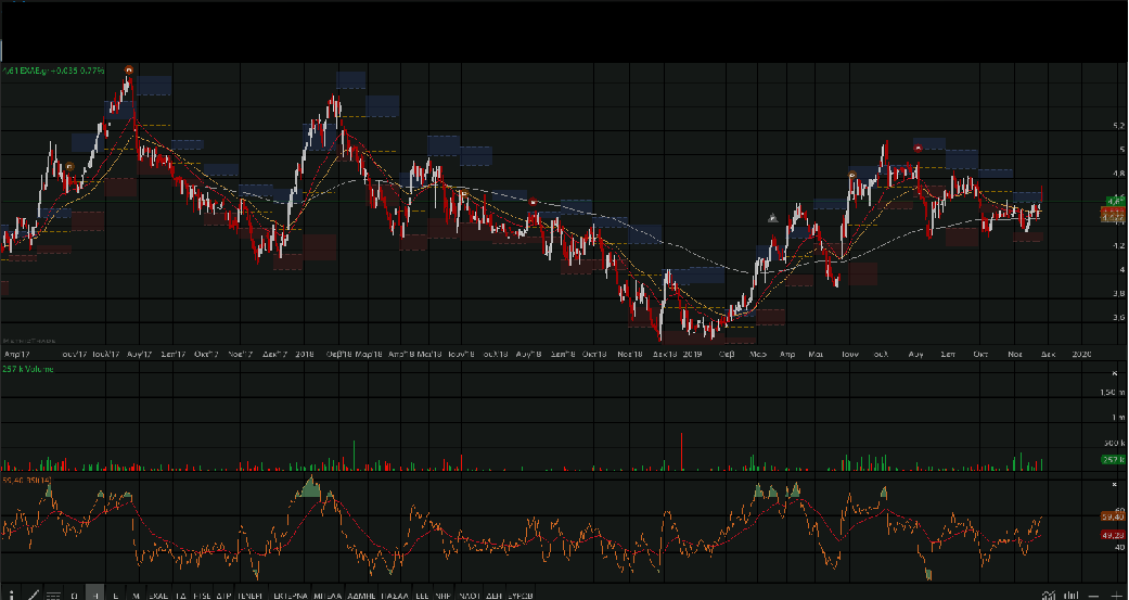 είναι οι αντιστάσεις στα 4,80 – 4,85 ευρώ και 5,00 ευρώ (διάσπαση
