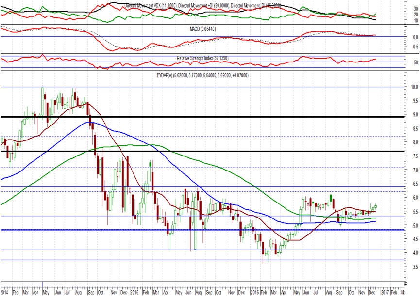προς τα επίπεδα των 6,00 – 6,10 ευρώ, επόμενος μεσοπρόθεσμος