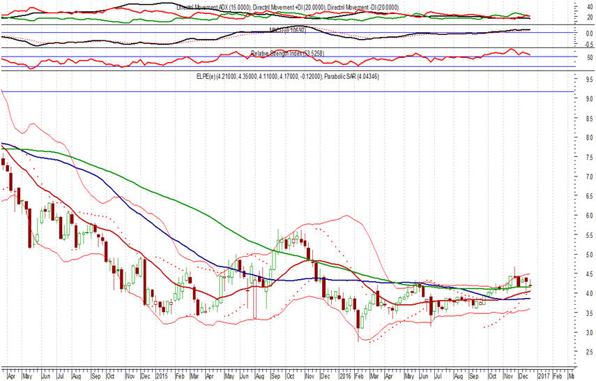 μετοχή των ΕΛΠΕ, με την κίνηση πέριξ των σημαντικών 4,10 –