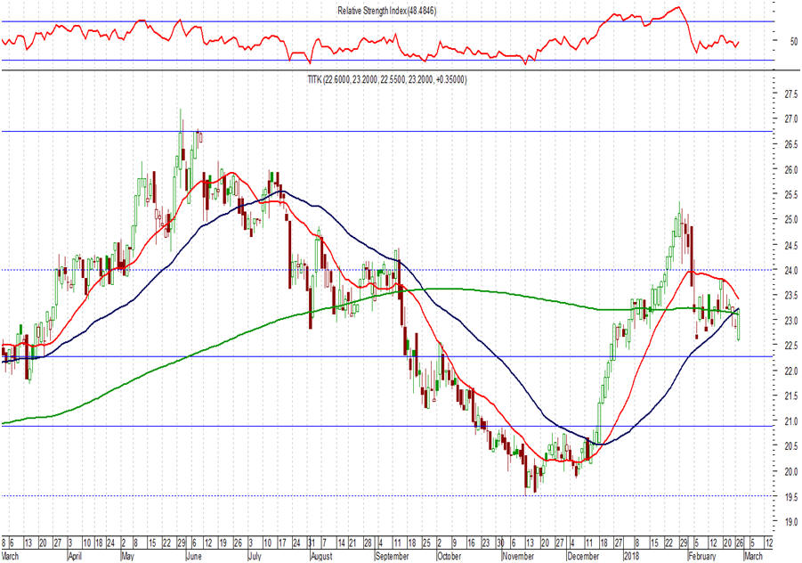 23,20 ευρώ (+1,53%) έκλεισε χθες η μετοχή του Τιτάνα, με τις