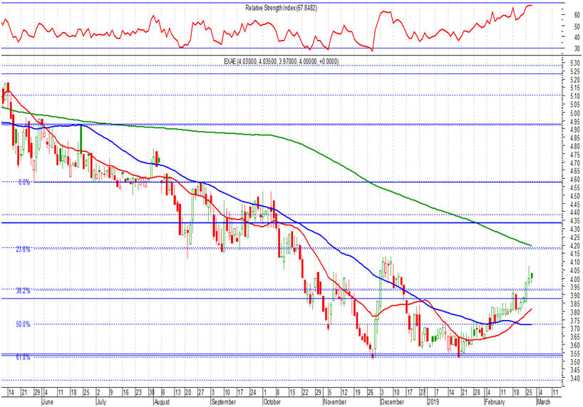 4,35 – 4,40 ευρώ. Ακόμη υψηλότερα, οι επόμενες αντιστάσεις
