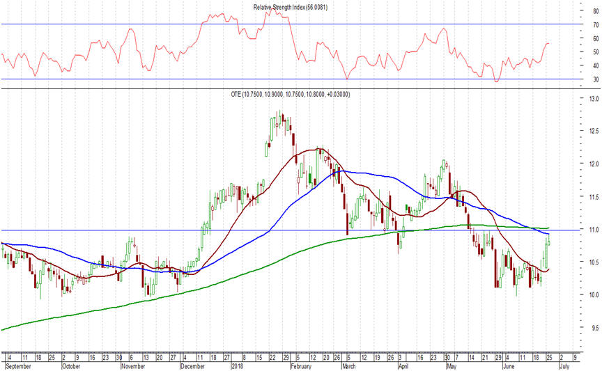 Το πάλεψε κατά τις τελευταίες ημέρες η μετοχή του ΟΤΕ (10,93 ευρώ, +1,20%), με το ερώτημα να είναι αν αυτή η αντίδραση θα