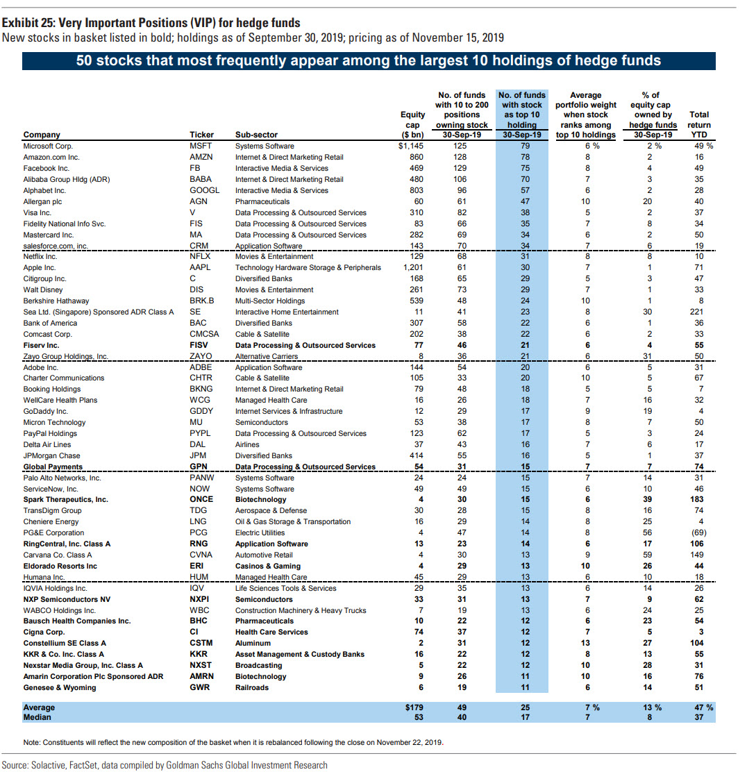 παρουσιάζονται οι 50 πιο αγαπημένες μετοχές των Hedge Funds.