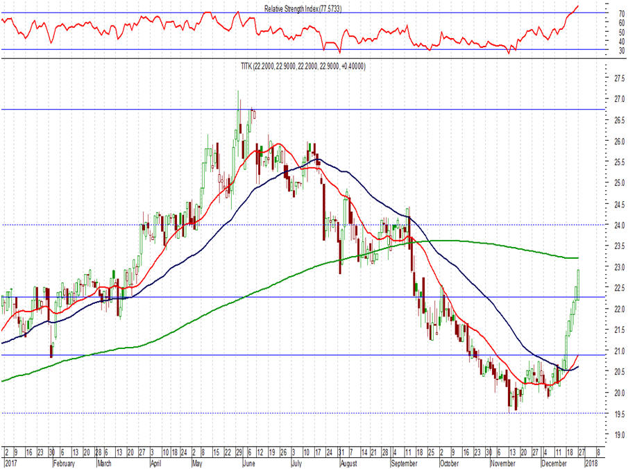 υψηλό της ημέρας έκλεισε χθες η μετοχή του Τιτάνα, στα