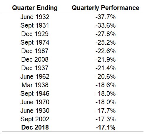 Και κλείνοντας με τις διεθνείς αγορές και στα πλαίσια των στατιστικών που υπάρχουν στη στήλη «Κυνηγός» χθες και σήμερα, ας αναφέρουμε και ένα ακόμη ένα στατιστικό. Ότι η επίδοση της Wall Street τους τελευταίους μήνες, κατατάσσει το τελευταίο τρίμηνο του 2018 ως το 14 χειρότερο τρίμηνο στην ιστορία της Wall Street.