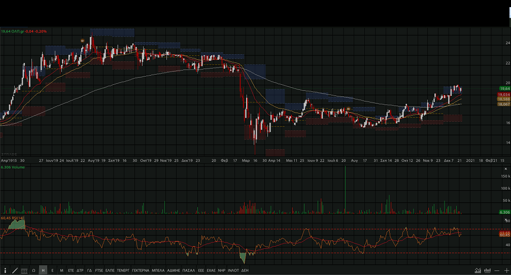 Στα 19,64 ευρώ έκλεισε ο ΟΛΠ, με οριακές απώλειες 0,20%. Και