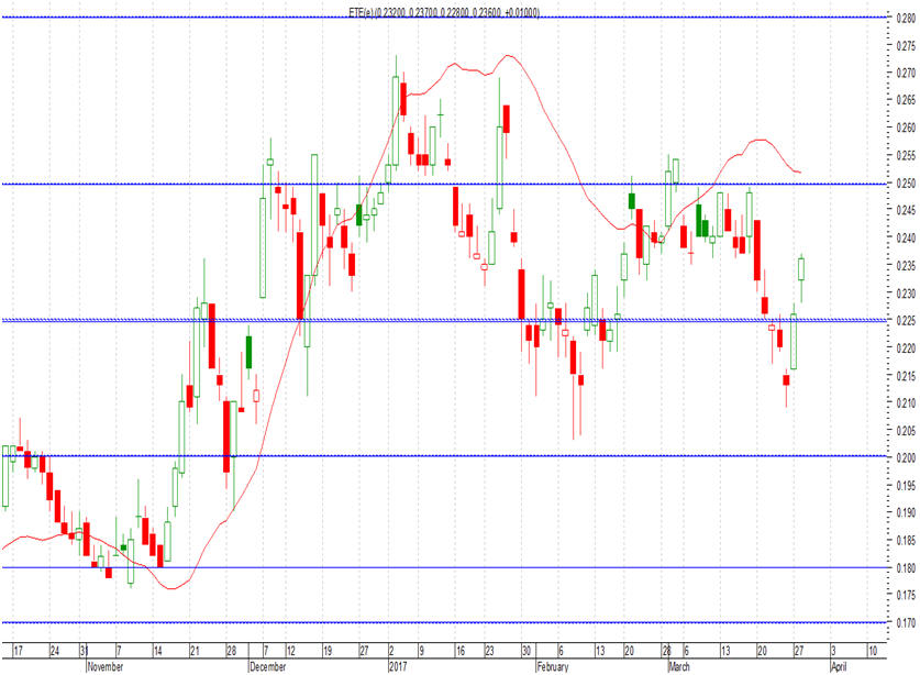 έκλεισε χθες η μετοχή (0,236 ευρώ, +4,42%). Υψηλότερα και
