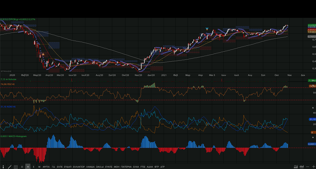 σε επίπεδο 52 εβδομάδων (+203,65%), στα 0,9152 ευρώ έκλεισε