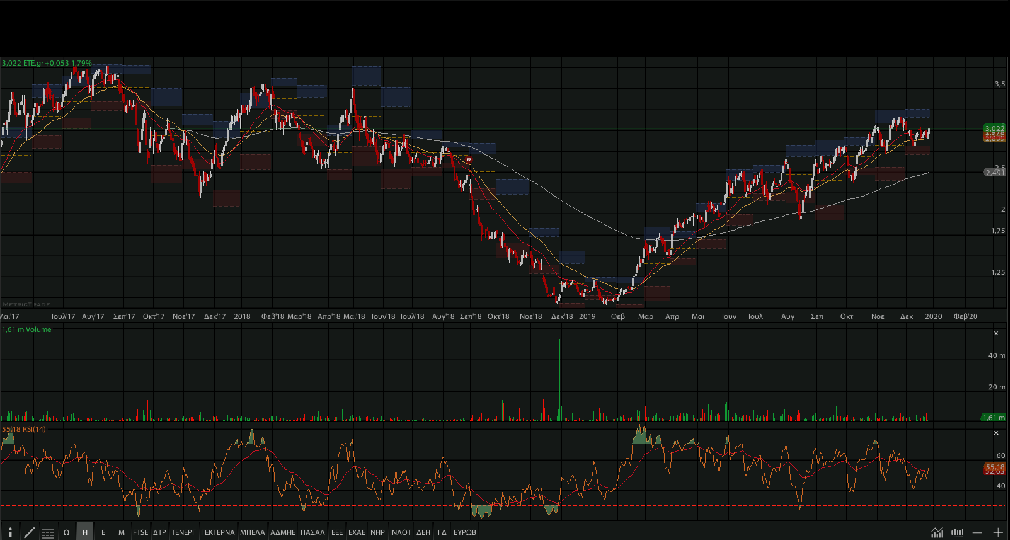 Επόμενες αντιστάσεις στα 3,10 – 3,15 και 3,45 – 3,50 ευρώ (υψηλά