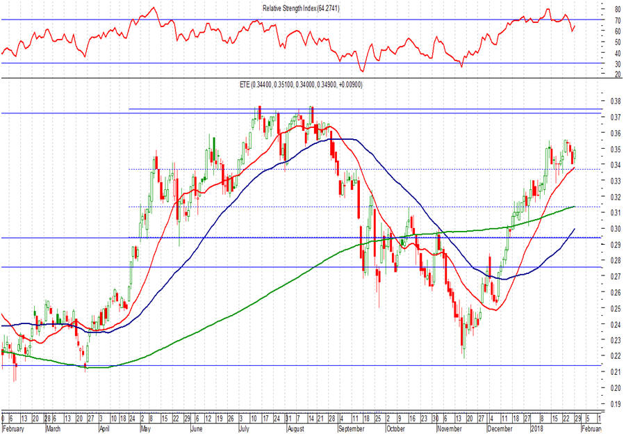 αντιστάσεις στα 0,37 – 0,372 ευρώ (σε αυτά τα επίπεδα θα