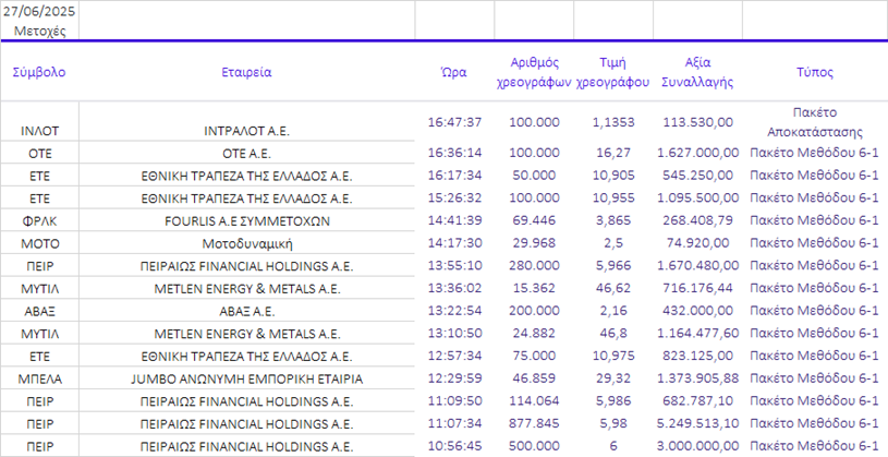 για τη μετοχή με χαμηλότερες κατά μέσο όρο συναλλαγές...Η μετοχή
