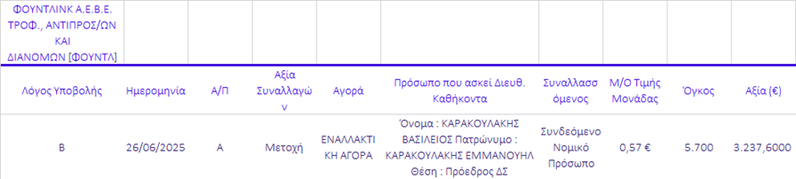 Γνωστοποιήσεις συναλλαγών |