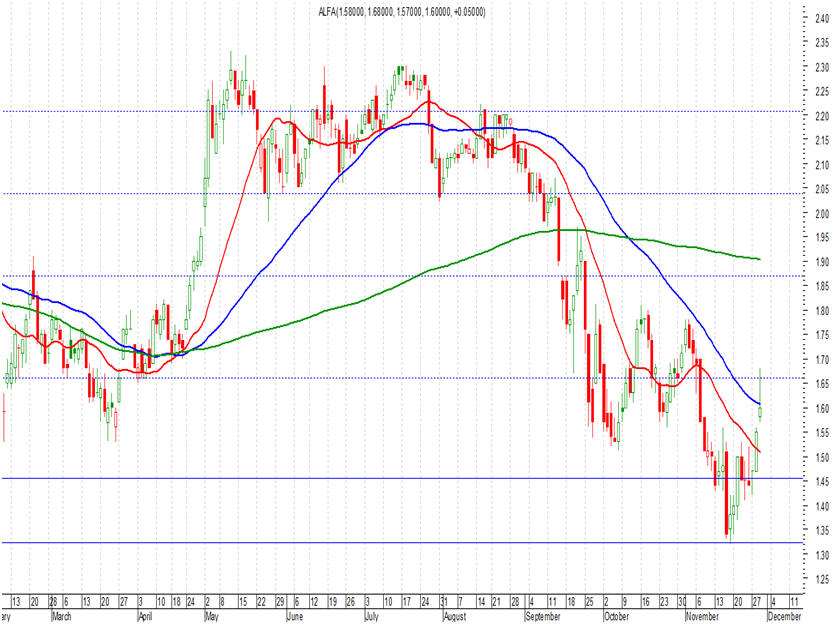 Στα 1,66 ευρώ (+3,23%) έκλεισε χθες η μετοχή της Alpha Bank