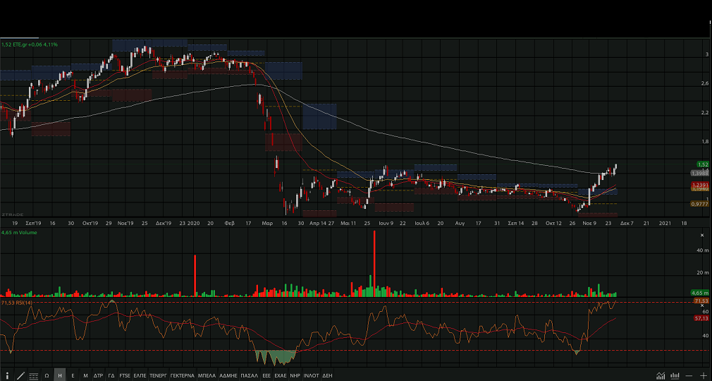 ΕΤΕ, που έκλεισε στα 1,52 ευρώ, +4,11%. Πλέον μαζί με τον
