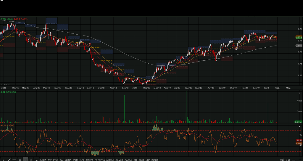 αφορά την ΕΤΕ, η μετοχή έκλεισε 2,917 ευρώ, με