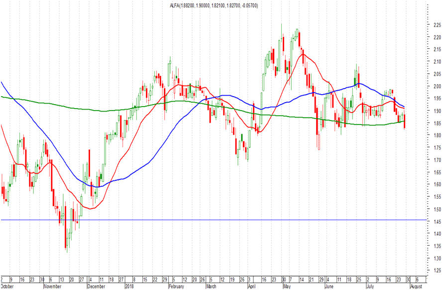 Alpha Bank η οποία χθες έκλεισε στα 1,867 ευρώ (+2,19%), το