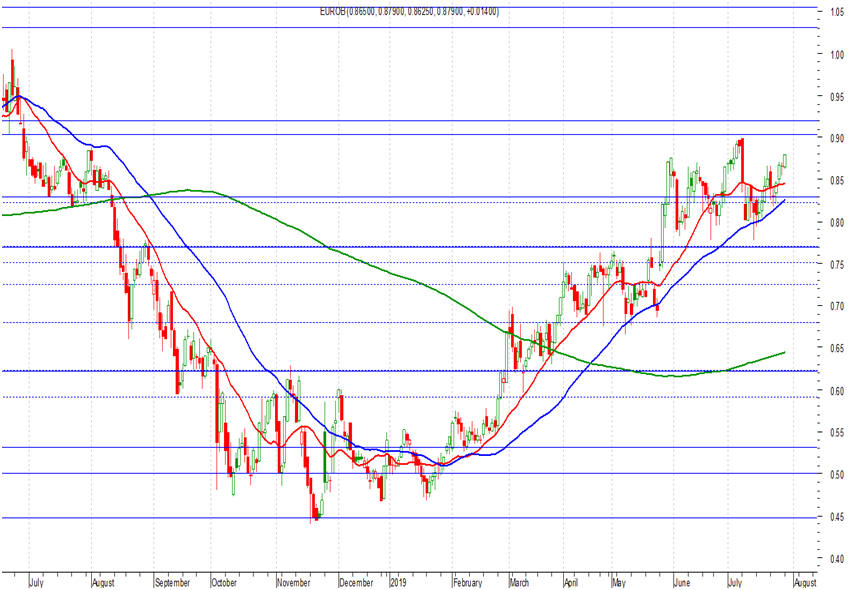 των 0,86 – 0,87 ευρώ, στα όρια των οποίων