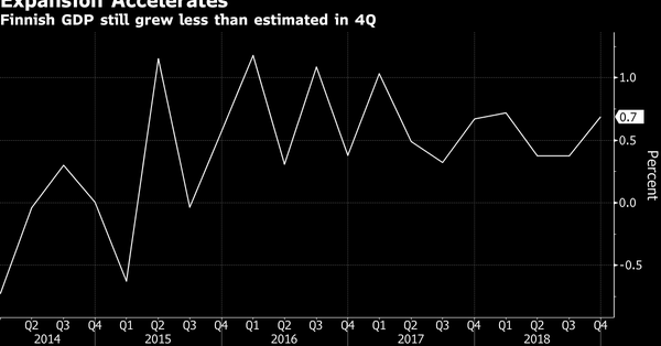 Finland’s economic growth accelerated less than estimated in the final three months of 2018